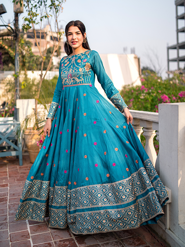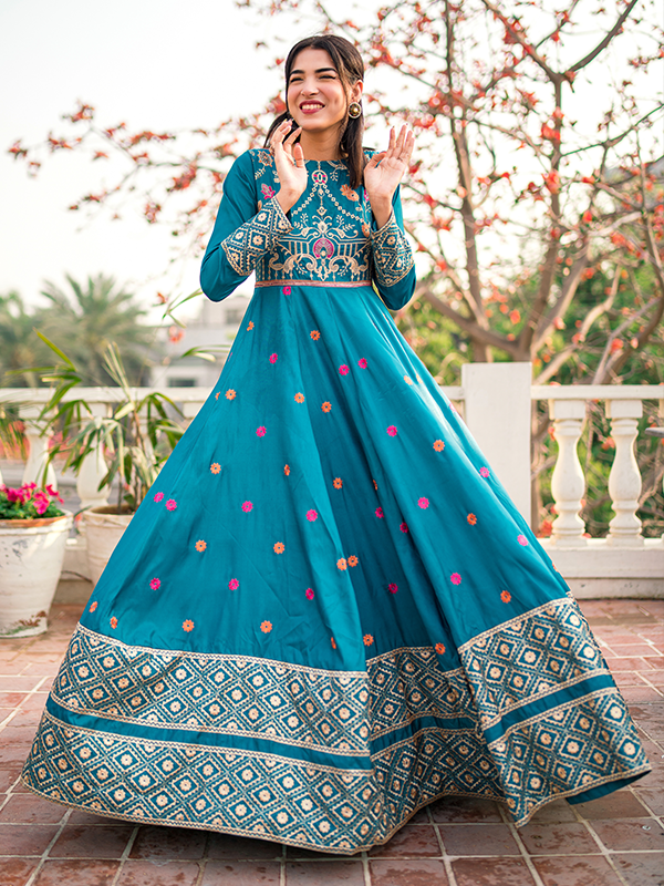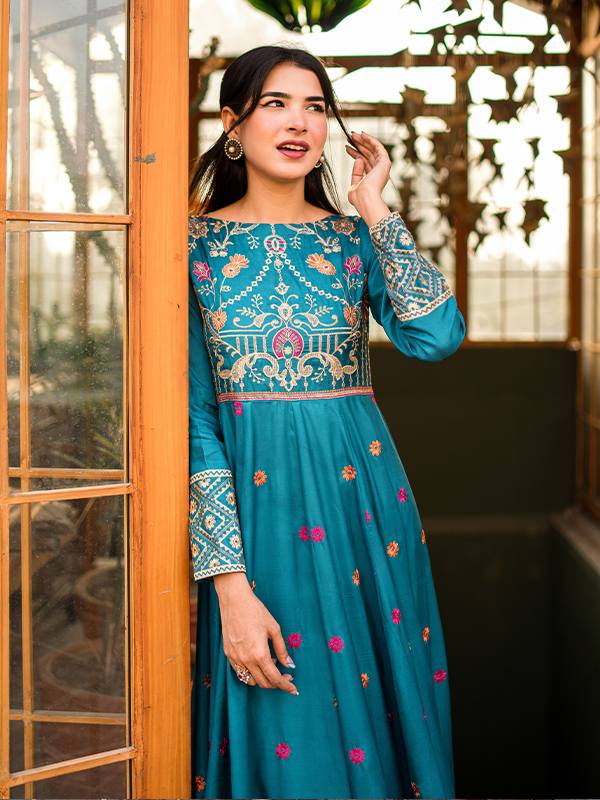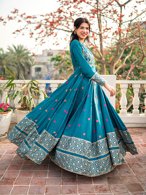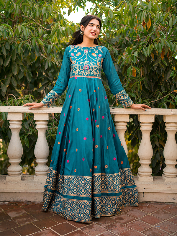 Comes up as marvelous frock with embroidery, tilla and sequins work on it. Zinc color represents the calmness and positiveness with the blend of orange and pink thread work on it. So grab this ravishing dress for your occasions☀️