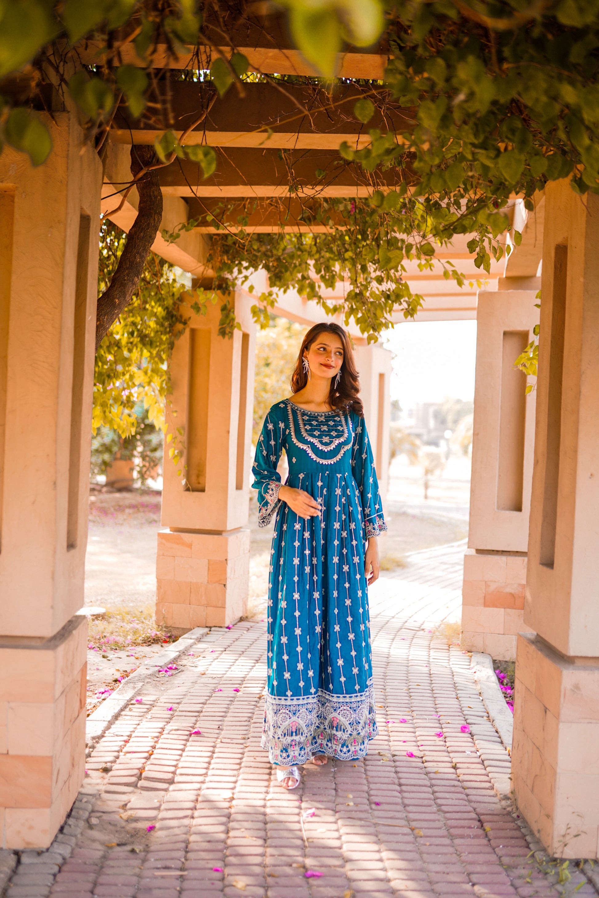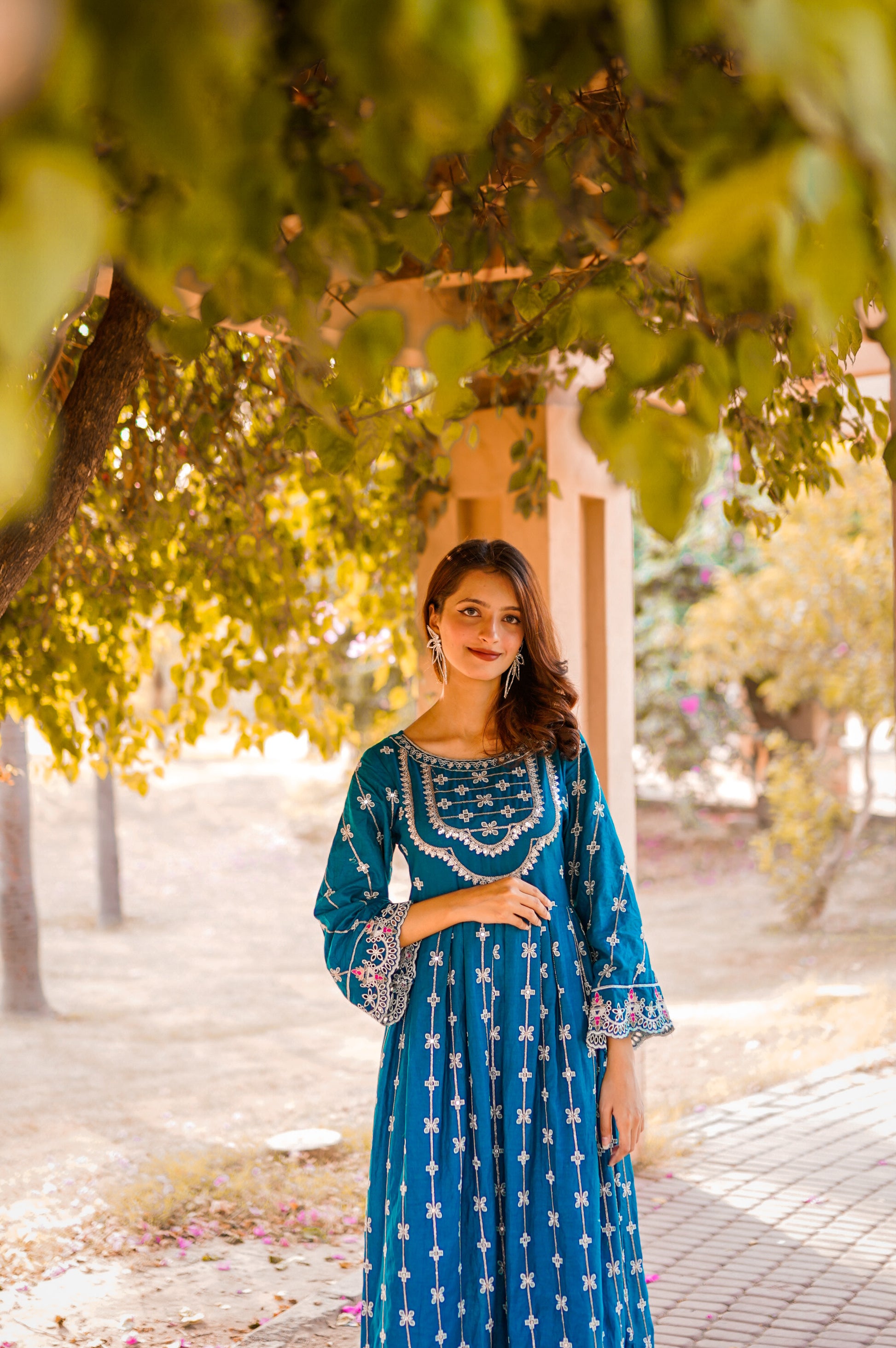 Length of this embellished frock 52 inches ( same for all the sizes)